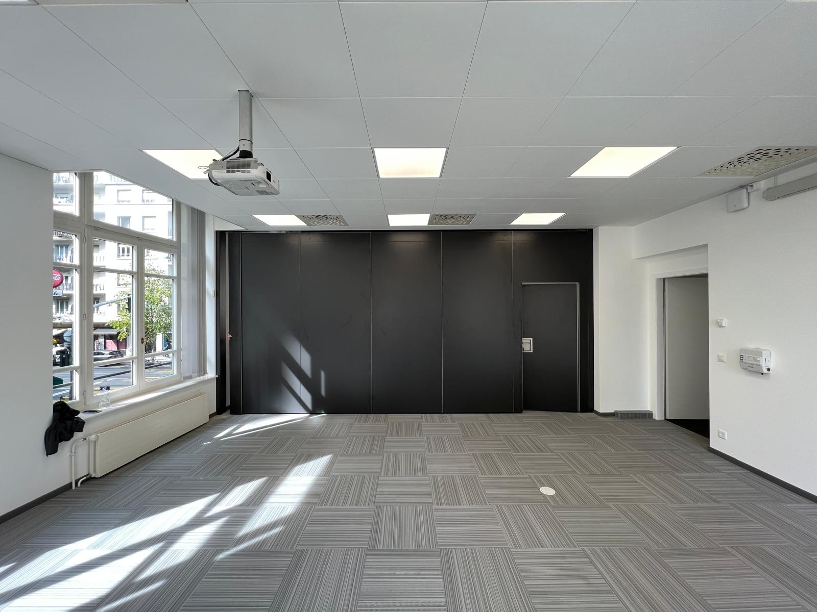 Une belle réalisation de cloison noir, dans une entreprise aux Pâquis , cloisons mobile 49 dB
